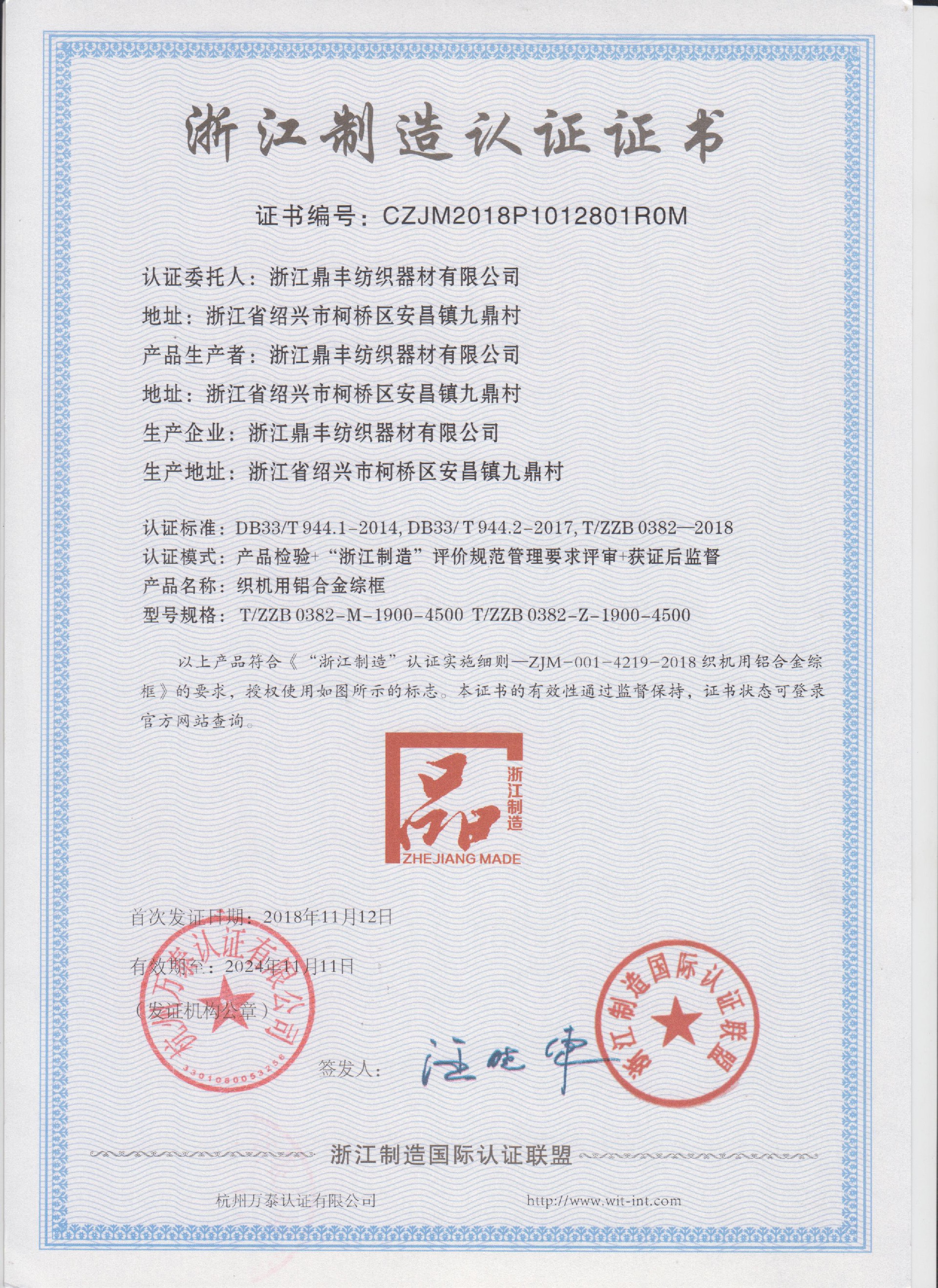 1、貴公司是一家專業(yè)生產(chǎn)各類無梭織機(jī)鋁合金鋼筘、綜框、鋼片綜、停經(jīng)片、經(jīng)軸、織軸和卷布輥等產(chǎn)品及配件的民營企業(yè)。公司成立30多年迅速發(fā)展、占領(lǐng)市場的秘決是什么?余定雅:是高品質(zhì)的產(chǎn)品,完善的售后服務(wù)和大規(guī)模的生產(chǎn)能力保證了浙江鼎豐紡織器材有限公司的產(chǎn)品銷售量在國內(nèi)獨占鰲頭。為了與全球市場經(jīng)濟(jì)接軌,鼎豐紡